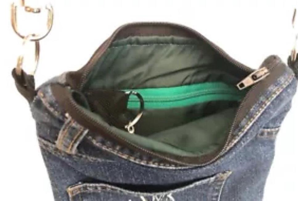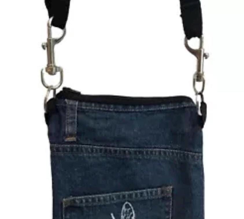 Handmade, across body small denim shoulder handbag.